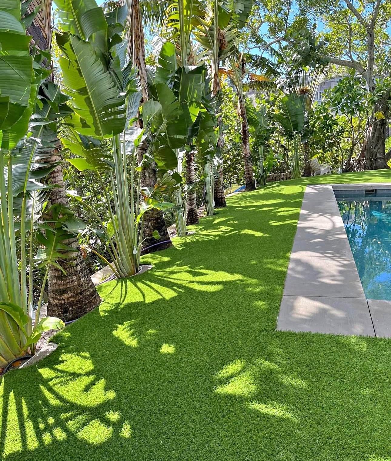 While artificial turf can heat up in direct sunlight, we use high-quality, UV-resistant turf designed to handle Florida’s climate. Additionally, regular brushing and rinsing can help cool it down.